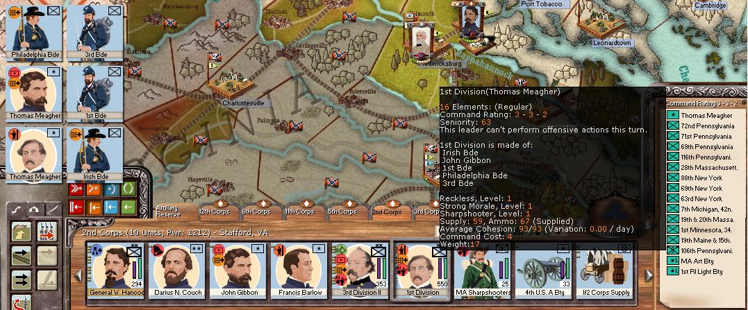 Also, the brigades that appear as part of Patterson's army, the NVA brigades, share elements with the PA Volunteer brigades (ie, both the NVA/I brigade and the 1st PA Brigade have a 1st PA Vol.) I'm not sure if these are duplicated brigades, or, if they are not, the duplicate elements are worth correcting. Should someone wants to look into this further, I'll provide more specific information.