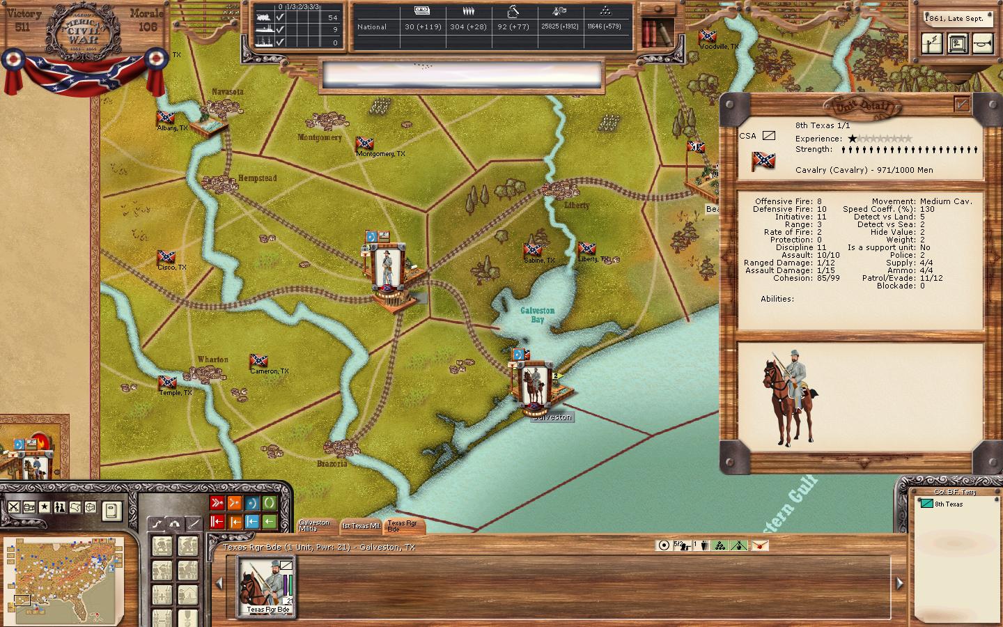 mikee64 wrote:I don't think the TX Ranger brigade is going to be elite, because there is no such element as elite cavalry, unless I'm mistaken. The regiments do have the same stats as regular cav.