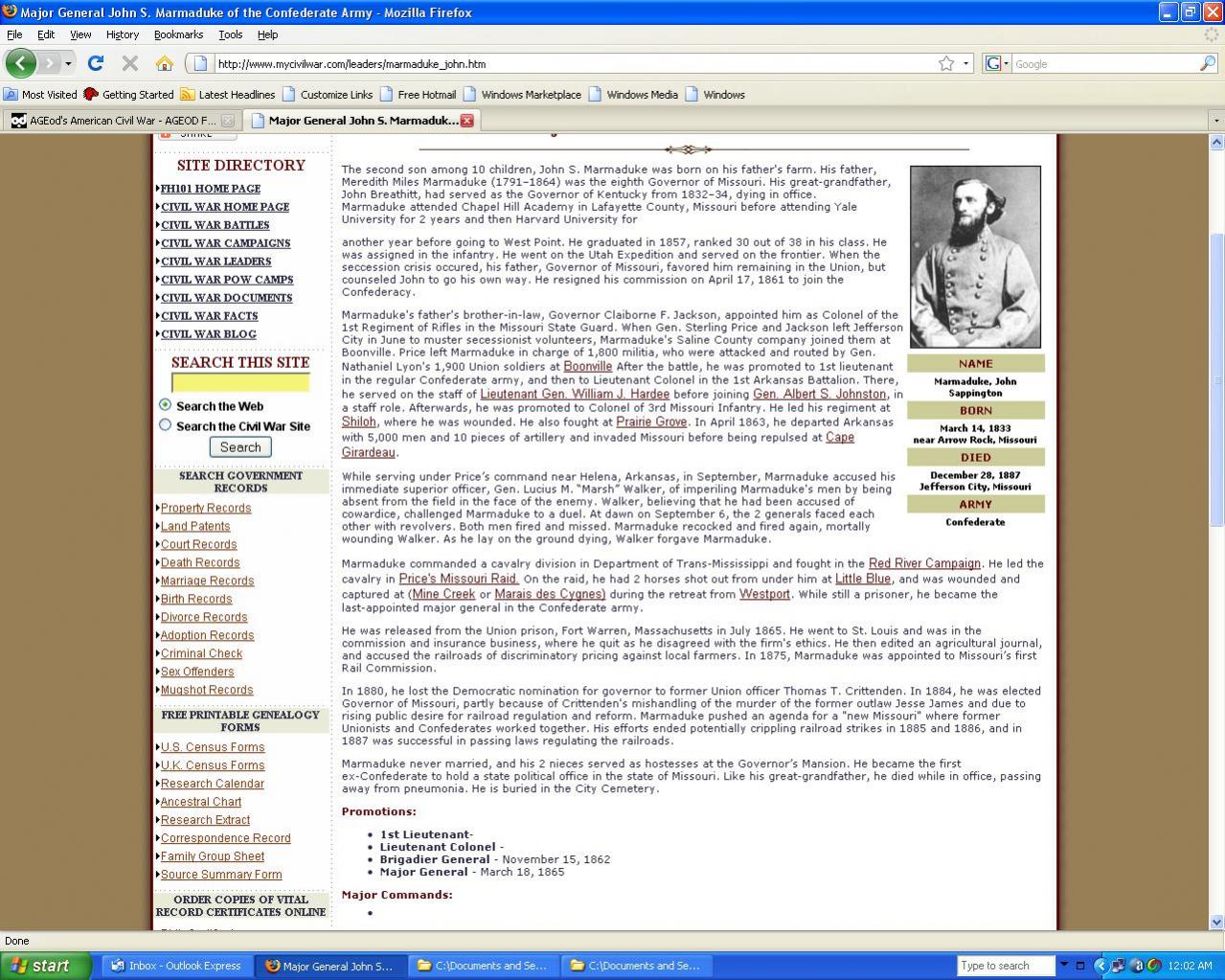 I'd like to see General Marmaduke added to the game (april campaign). He played an important role in spoiling many of the Federal advances in the west and trans-Mississippi theatres. Here's a brief recap of his war record: