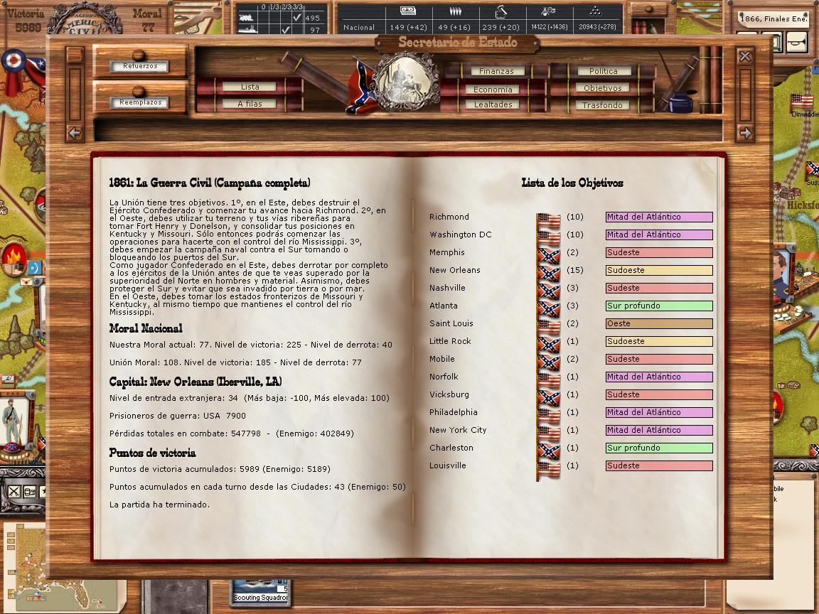 pienso que en la primera mitad de la partida el norte estuvo muy a al defensiva: en el este incluso retirandose al otro lado del Potomac, en el oeste con poca actividad y mas alla del mississippi, aunque no se mucho, parece que ni siquiera intento controlar Missouri.