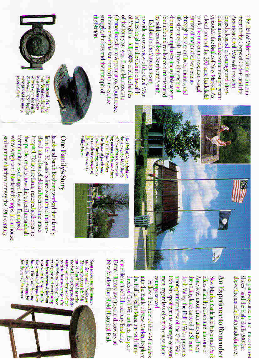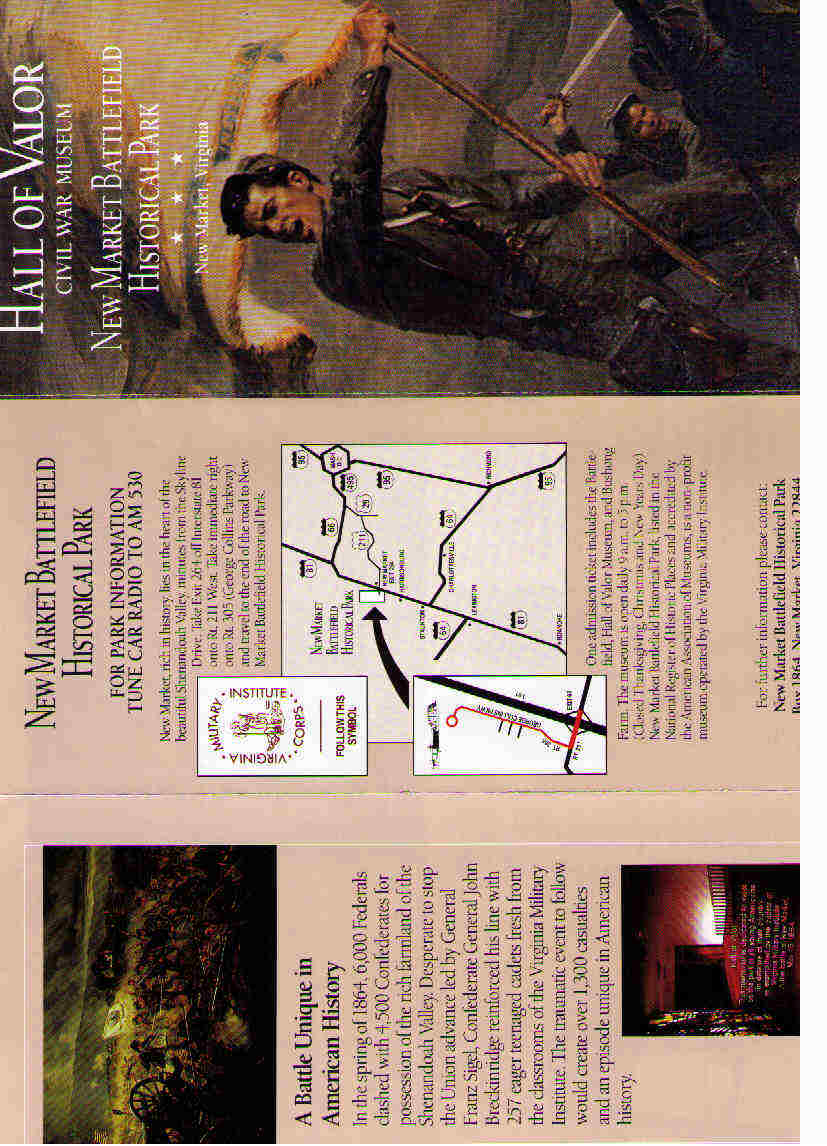 Como lo prometido es deuda y aunque no he desmontado los albunes de fotos, os he escaneado unos cuantos folletos turísticos de los campos de Manassas y New Market. A ver si me sale que soy un poco torpe pa esto.He tenido que reducir mucho la calidad por que me decia que no me lo admitia, a ver que pasa.