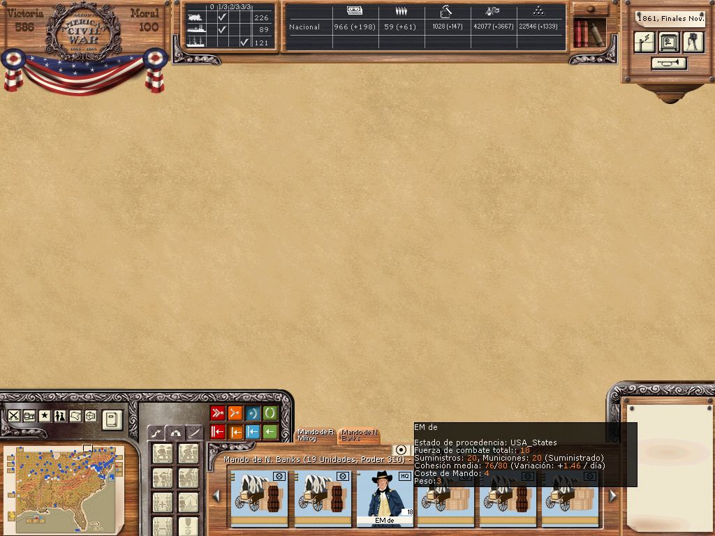 Con el ultimo parche se ha retrasado al posibilidad de formar cuerpos hasta 1862, por razones históricas (mirate el léeme traducido aquí para más detalles)