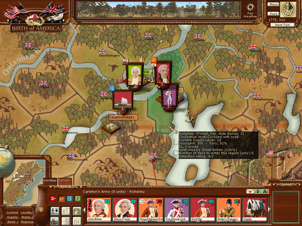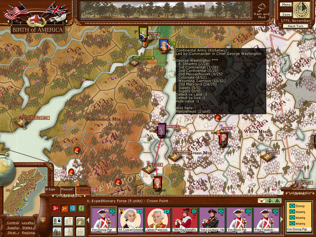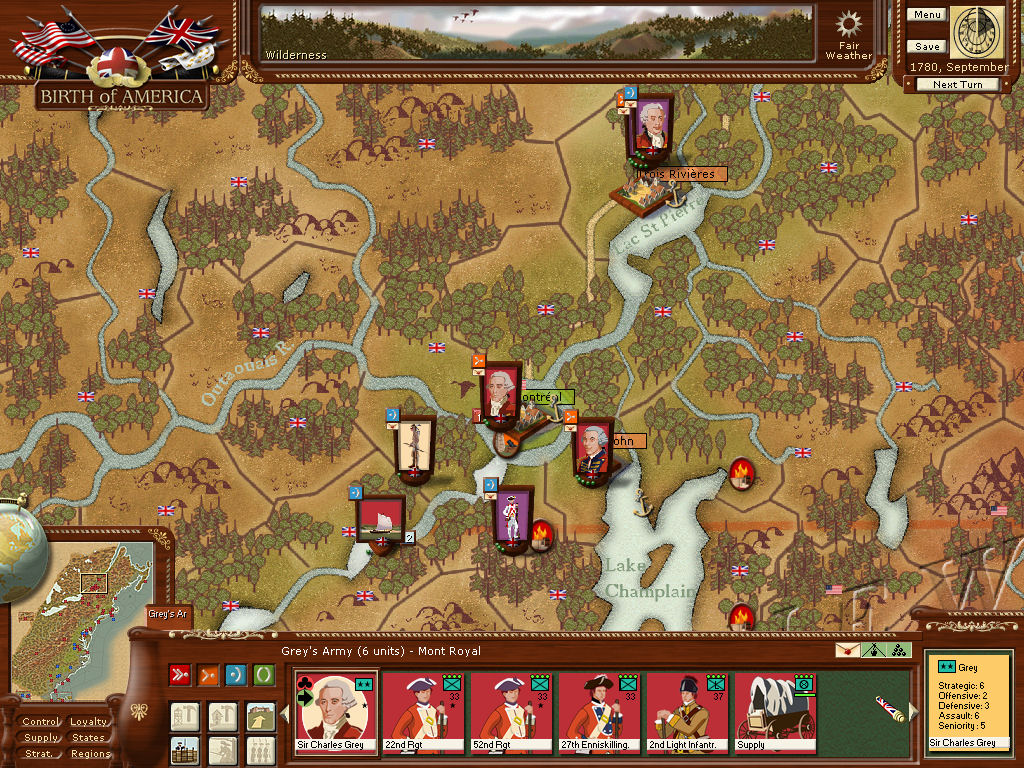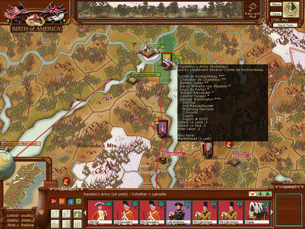 Hopefully a harsh winter will weaken the Americans on the St. Lawrence to the point that these forces can move north and trap Washington. Easier said than done, though, in all that wilderness.