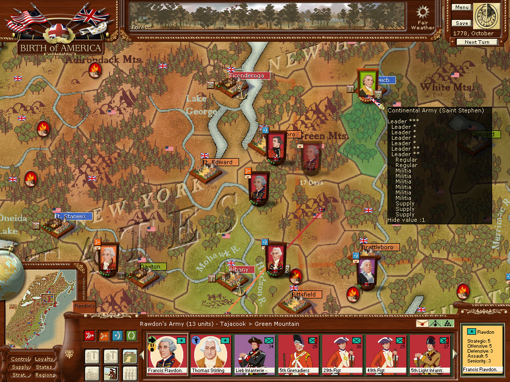 I will attempt to salvage the situation around Montreal and pursue Washington near Brattleboro. I have substantial forces within striking distance of Albany.