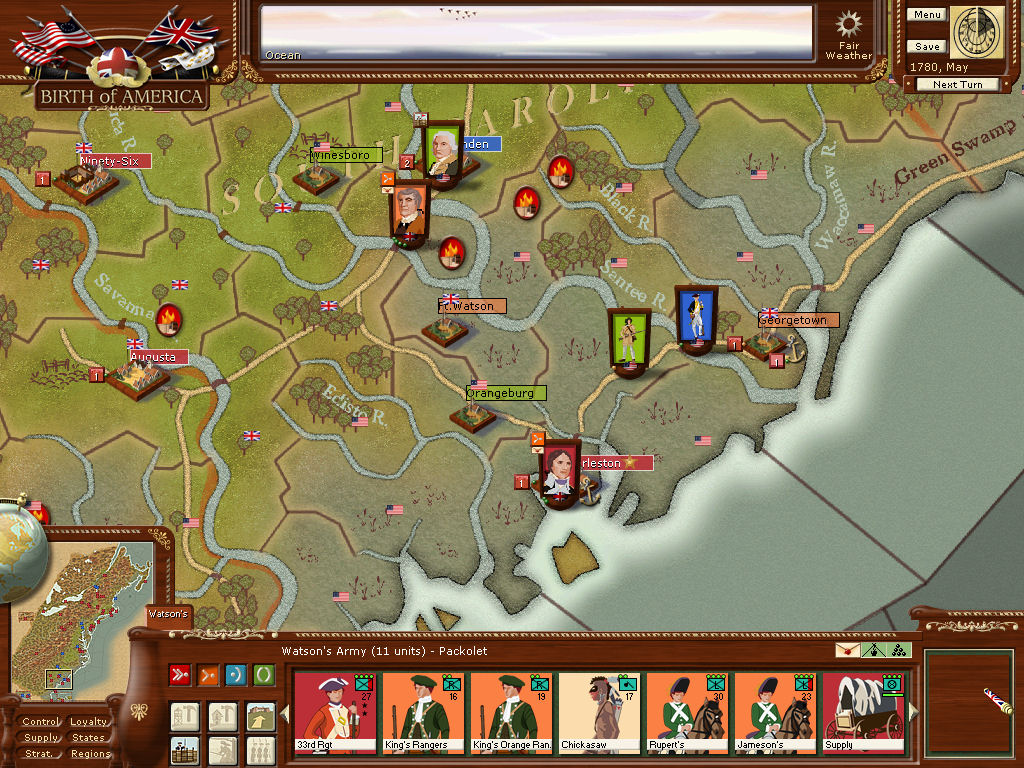 Americans go on to the offensive in the Deep South, Taking Orange,SC and besieging Georgetown, 96 and Charleston.