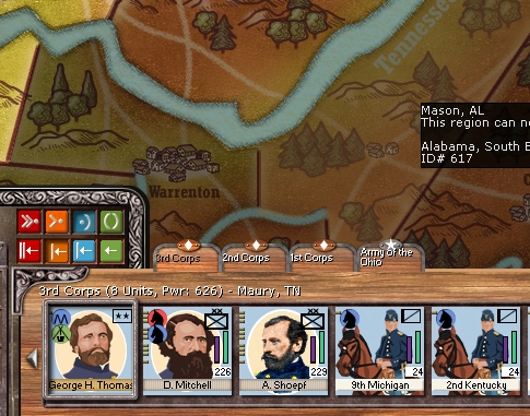 6:50:33 PM [Warning ] ULocalize.LoadLocalStrings: Alias too short at line 758 need at least 3 chars (ignored): 3.+ But what about Independent Forces? Being out of the normal Command Chain means that your command structure is not as efficient as being in a Corps or an Army stack. In game terms, it means that the leaders only generate half of their Command Points, making it far more difficult to avoid a command penalty.§Select the Independent Force at Clarksville led by General Buell.§§You’ll notice that a number pulses in red in the stack panel near an envelope.§§Click on the ‘next’ button to know more. in file: C:\Program Files (x86)\AGEod's American Civil War\ACW\Settings\LocalStrings_ScenariosACW.csv Can be a key parsed in alias itself! ($Cavalry = Cavalerie would be 3 = Cavalerie ...