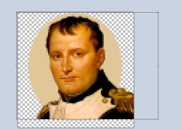 Open the picture of Napoleon in Paint. To work better, as it is a full body picture, cut the head and neck using the rectangle select tool. Now with that selected, edit and paste in as new image. You will have something like this. You have to look carefully at the original graphics so that only are shown the head and the neck