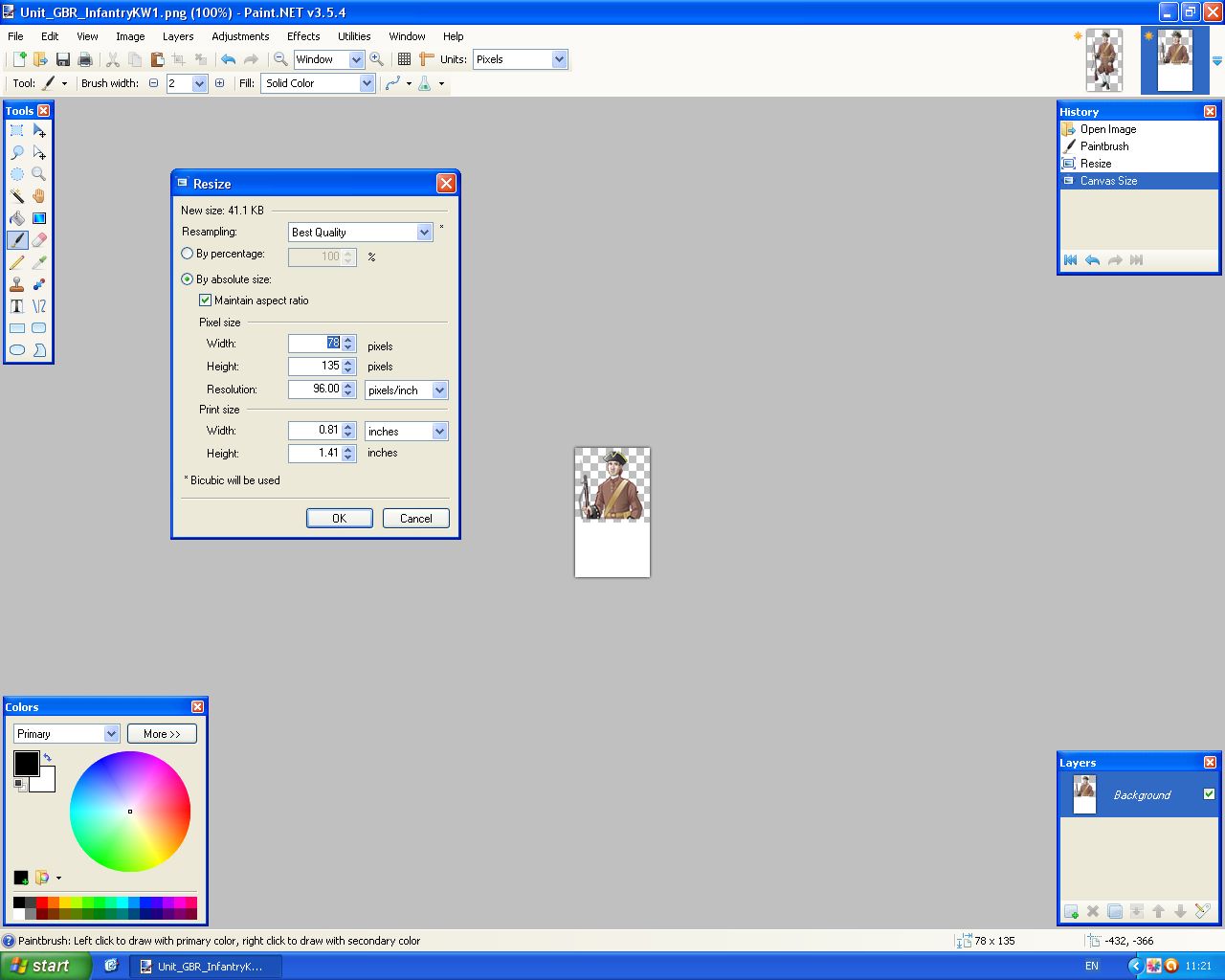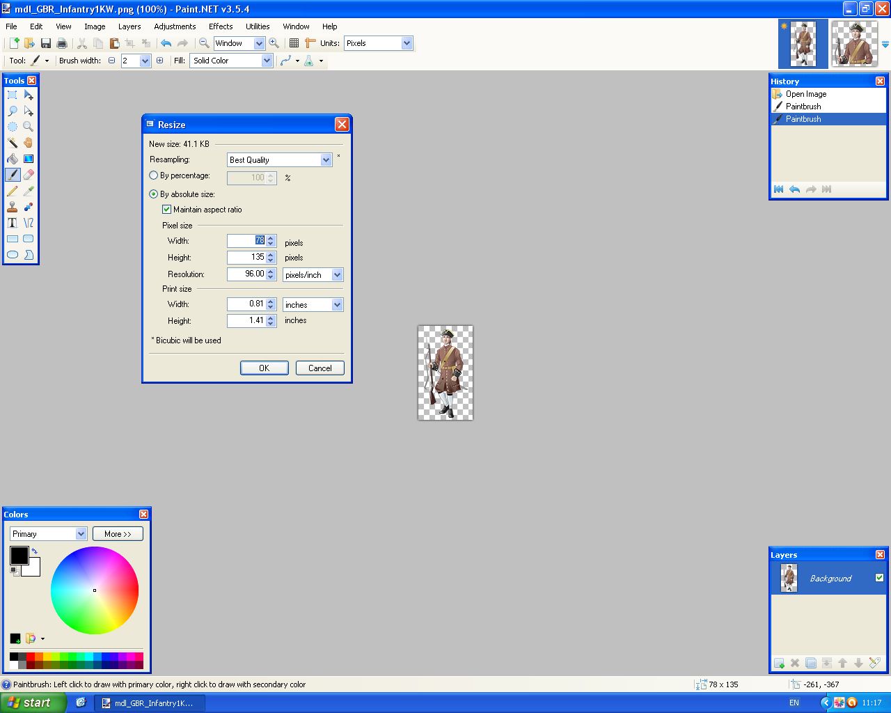 If I take the Army model you made and click on resize in Paint.Net I get these numbers :-