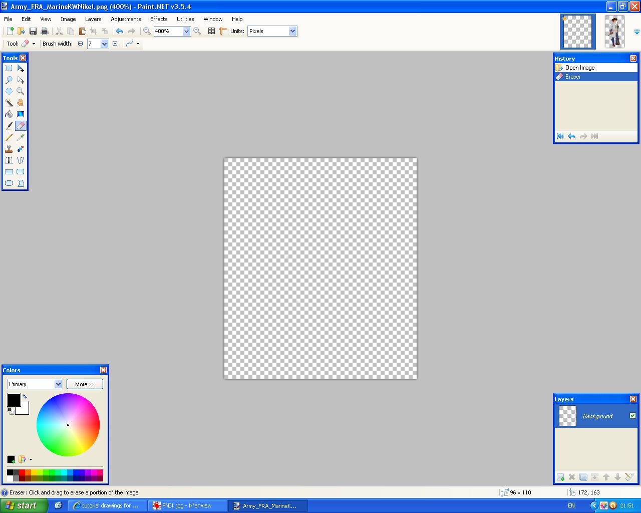I have the resized image at the top right - and I have a blank Army canvas.