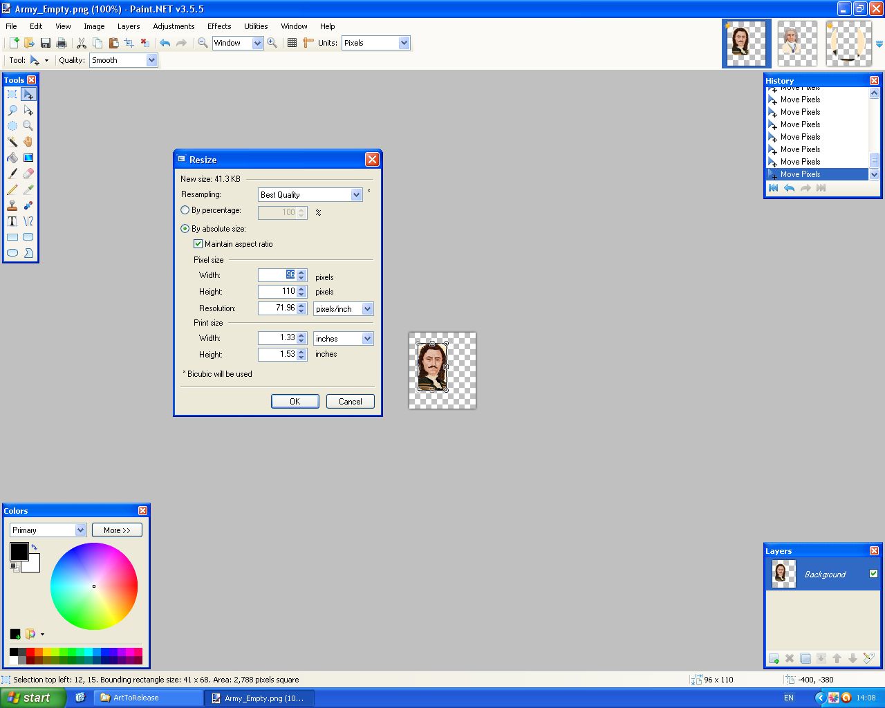You have to resize to around 44 x 64 pixels that is the size of the portrait without any background. And then add some colored pixels in the bottom margins :)