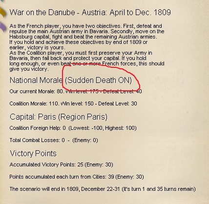 Instead, other more "conventional" wars like the Coalition wars against Prussia or Austria ended in a peace agreement after a fast campaign, some big battles and the capture of the enemy capital. So a sudden death on better represent thins.