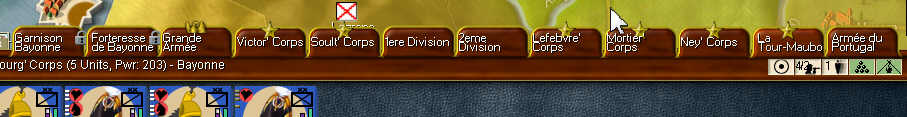 Picture 5 When Napoleon arrives with the Grande Armee, comes with him the Armee du Portugal, should this force be called this way? Yes, it is the army that was in Portugal, but it is not there any more, is this historic? About Cintra event, should it appear as The Treaty of Erfurt, in red and with newspaper information? Well perhaps it was my fault, playing too fast and missed it. I just noticed that had lost Lisboa ;)