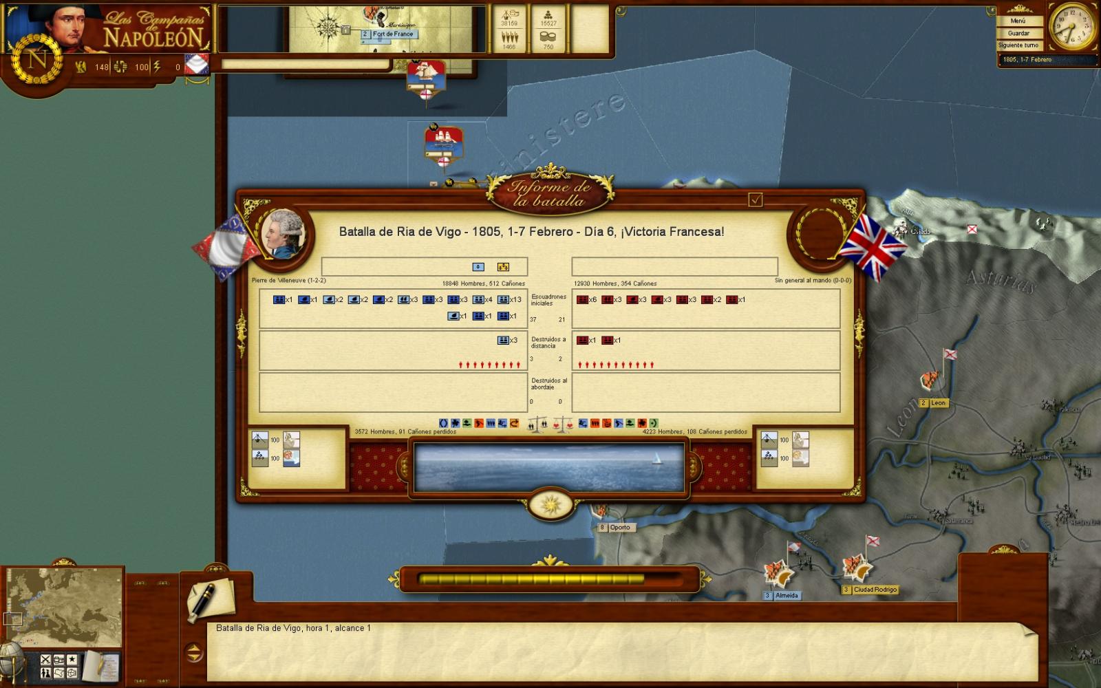 Exmo. Sr. Muy Sr. mío: Demorando el cabo Silleiro al O, distancia 25 leguas, navegaba la escuadra combinada con viento ONO muy flojo, en formación de la misma columna con que se finalizó el combate del día de ayer, al rumbo O ¼ SO, algo cubiertos los horizontes.