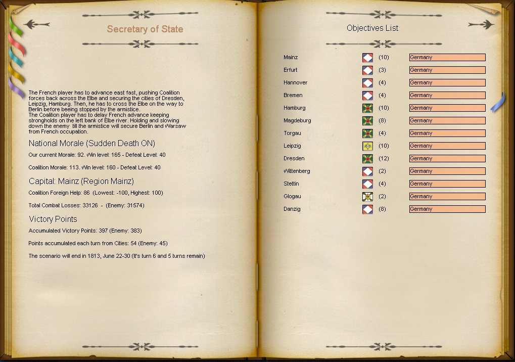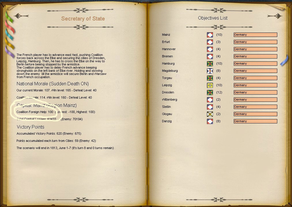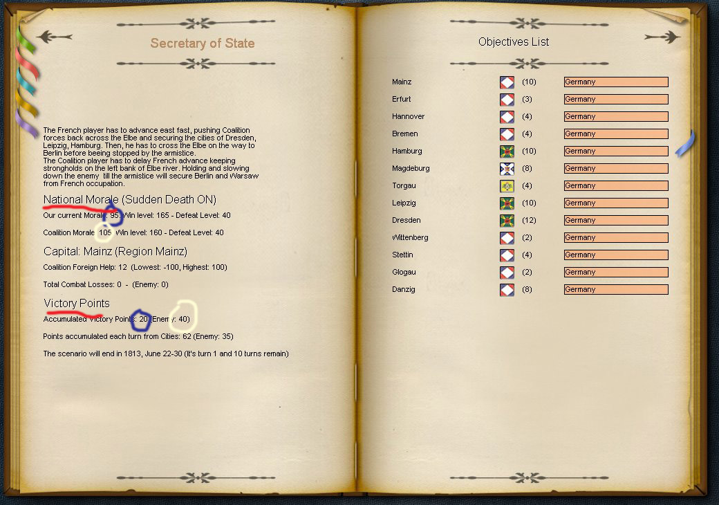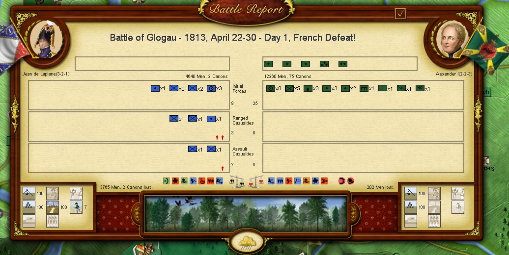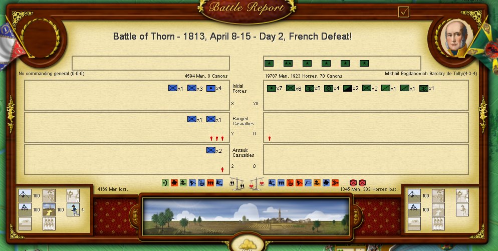 El resultado es este, por primera vez supero en puntos de victoria a la coalición, la victoria de Leipzig compensa la ineficacia en Hamburgo y la rendición de los sajones en Torgau