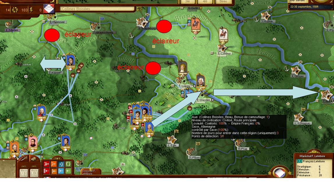 2/ Mais ou est passé son armée Prussienne ?? je peux faire des hypothéses mais je n'ai aucune certitude ! envoyer des eclaireurs pour le localiser: impossible de penser un plan sans savoir ou il se trouve !