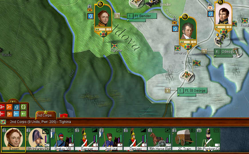 OK, started for testing the russian campaign. On the startup there are two Essen at the same time and with the same portrait as you said. The ** general is at Riga and the * at Moldava.
