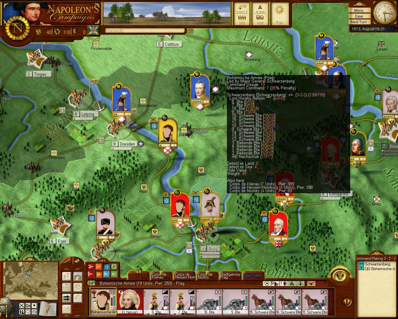 Confirmed. The 1813 campaign displays some interesting peculiarities, at least on the side of the Coalition forces, with Nelson having joined the Bohemian army :confused: (cf. attachment) and leader portraits on the map not matching those in the army display. And yes, I followed the advice of uninstalling, deleting the game directory and reinstalling (incl. patch 1.06). The attached screenshot is from a freshly installed game. Any thoughts?