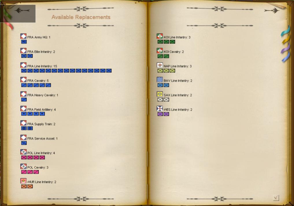 In the two pictures the Available Replacements Ledger page for 1813 scenario out of default NCP Intallation vs. Modder Times Installation.