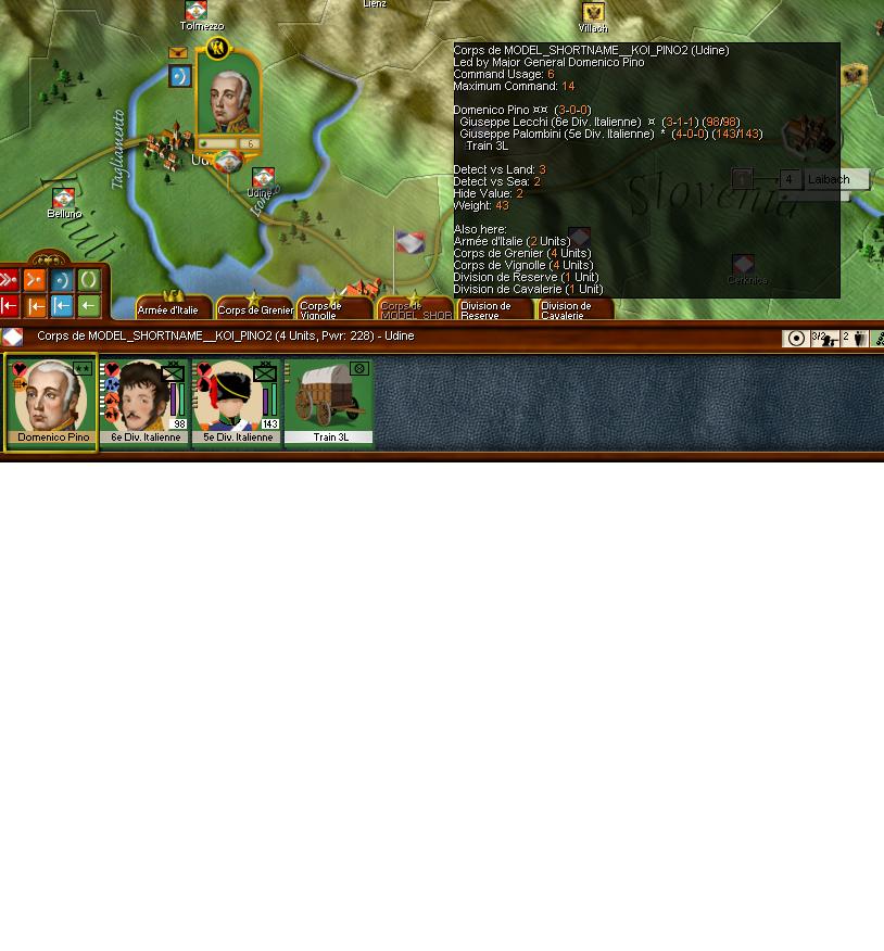 1. In the Struggle of Nations scenario, in the Italian army, Domenico Pino's corps is referred ans "MODEL..." corps, and even so in the tooltip (a simple database correction, I presume, as the guard capacity one)