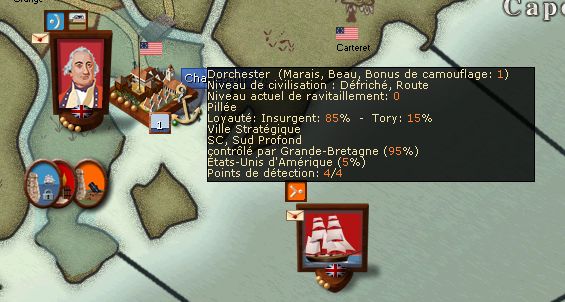 Things seem weird when you know that english control is not going above 95% and because of this the whole american army was able to move outside the city (without leaving the region) during the third turn without triggering any combat