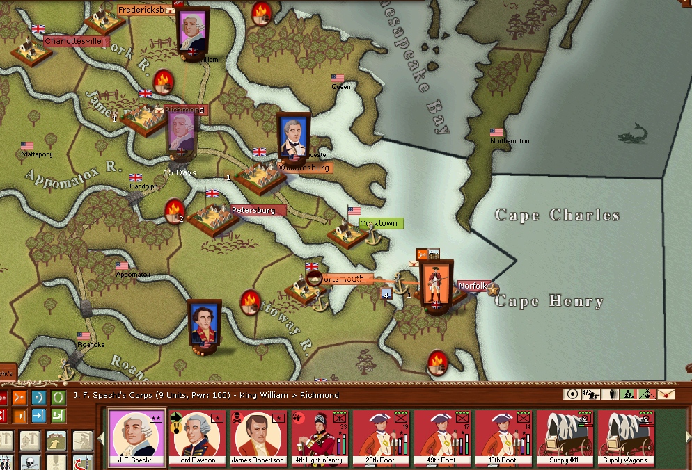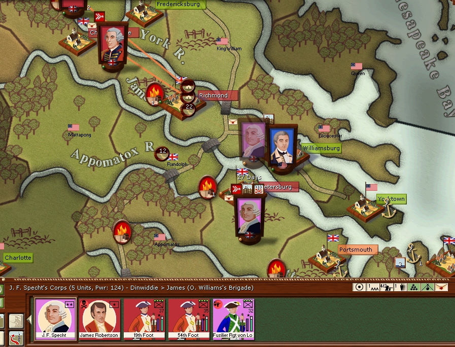 Just lots of reorganising going on while the winter is here,Cornwallis will move to Richmond ready to take command of the campain to march north and capture Alexandria.