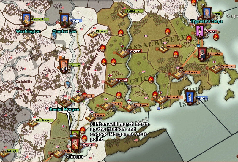 With the comming of winter most of the units in the north are in winter quarters although Simon Fraser's brigade is pursuing Major General John Thomas's army near peabody,Thomas's army evades Fraser and trys a sneak attack on Salem but is heavily deteated.