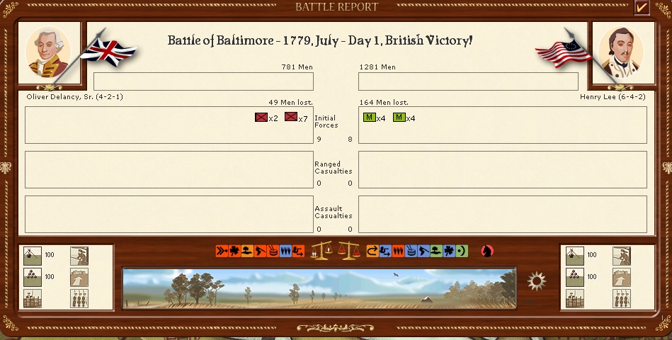 Sir Oliver DeLancey captures Baltimore after three month's of trying,I will move DeLancey back to NewEngland now so he suffers no penalties.