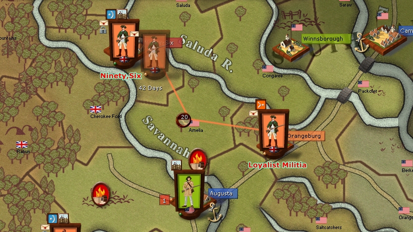 The Loyalist militia captured Orangeburg but the Americans disengaged and moved off to Augusta,The loyalists now face a 42day march back to ninety six as there is no supply in Orangeburg.