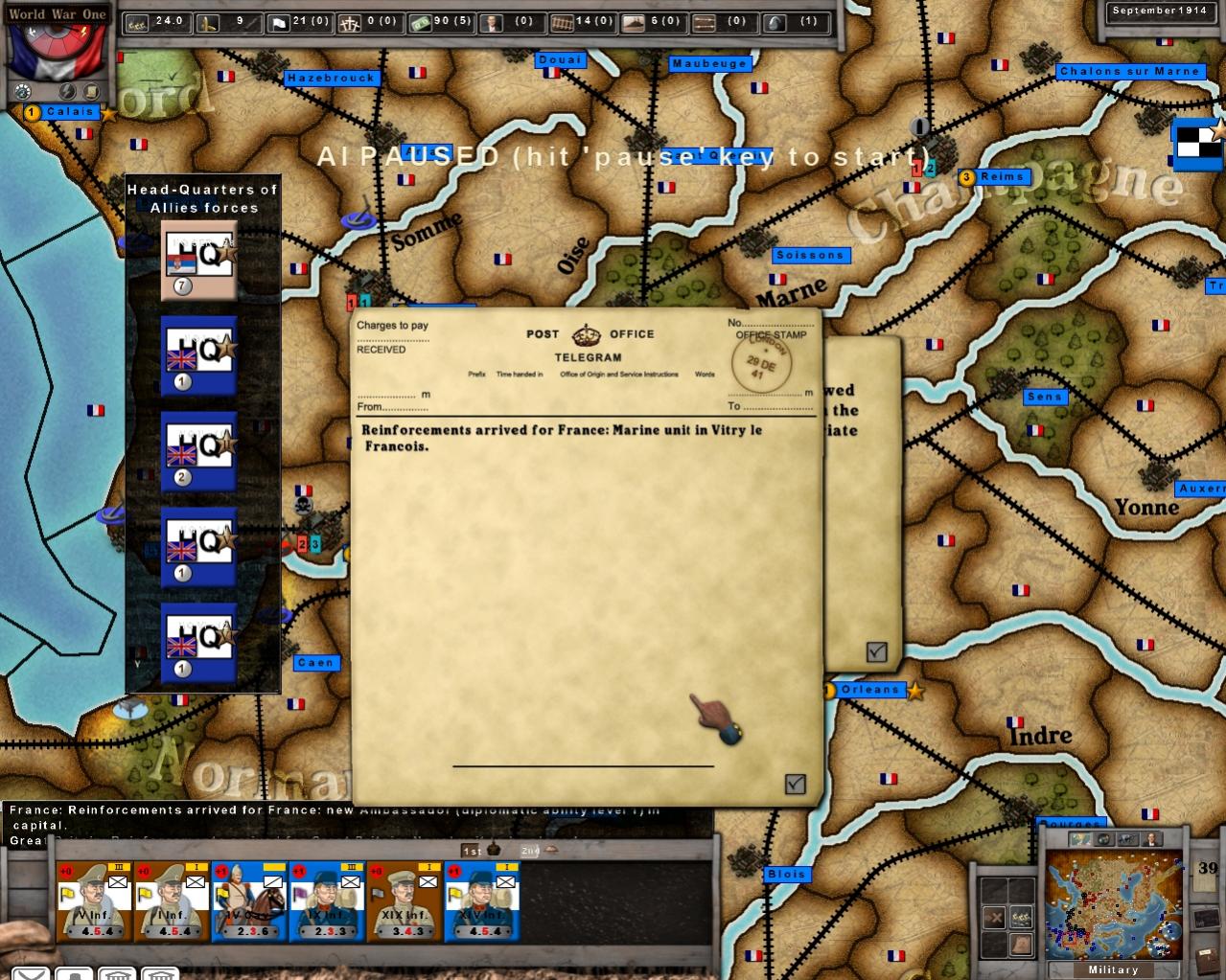 I have had the message that my French colonial troops (Algerians, Morrocans etc) are arriving at a particular province, (the location of the French GHQ) but the only units I ever have there are 2 fighter squadrons.