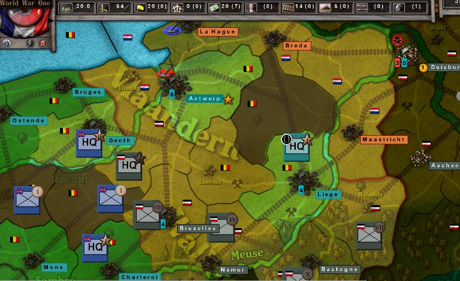 Well having driven out the German units I thought that would be the case but it seems another German unit has meanwhile passed through Louvain east of Brussels and laid siege to Antwerp.