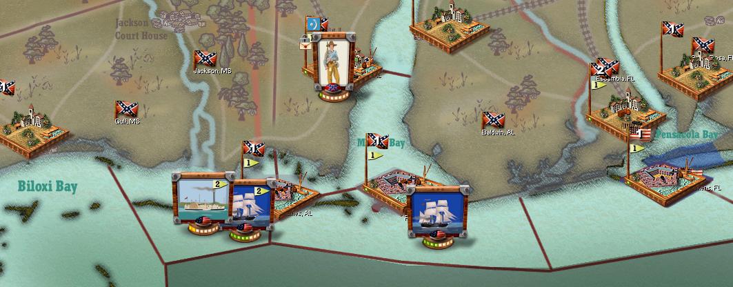 A fairly quiet turn. Grant sits in recovery. USA cav is invading deep into central Alabama and Mississippi. USA has also wrested control of the Mississippi's mouth.