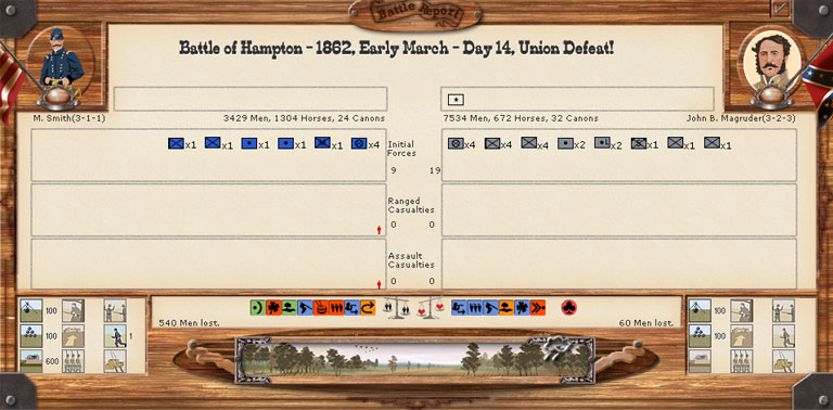 John Magruder has engaged M Smith on the James River Peninsula and captures Hampton. Smith escapes to Fort Monroe largely unscathed.