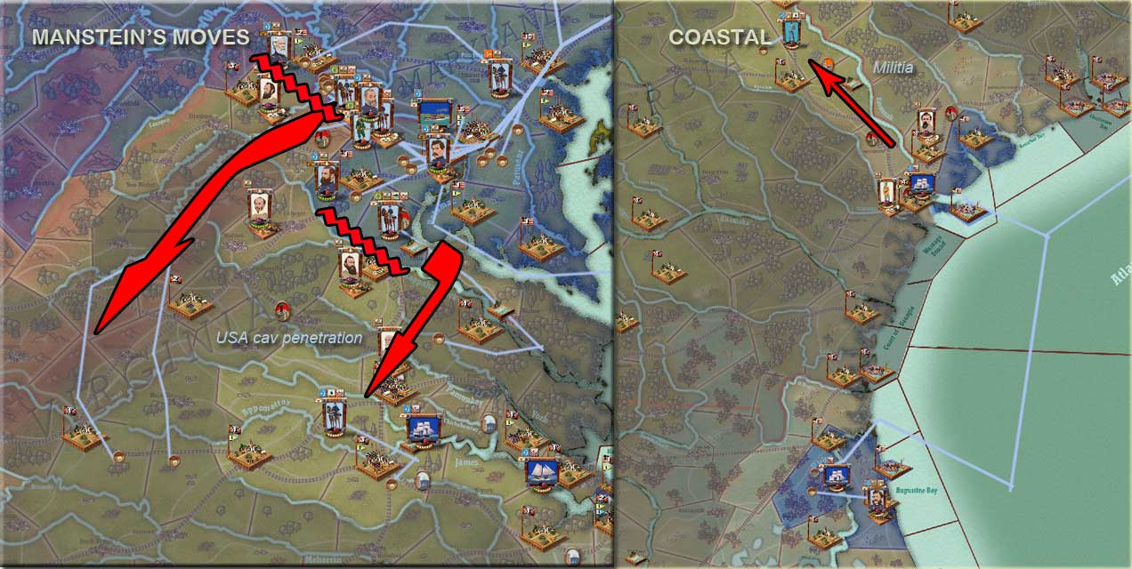 Virginia remains quiet, however to the south Runyan is futilely trying to Catch Manstein's cavalry elements.