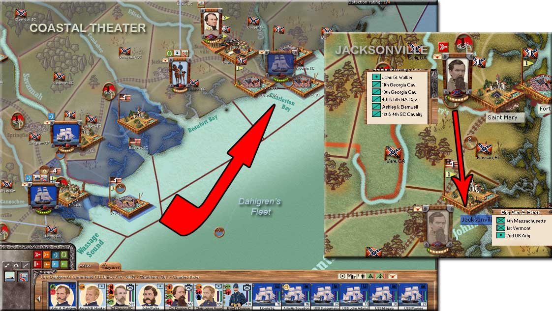 Manstein is also sending cav elements out from Jacksonville Florida to capture cities and villages in that area. Three Union divisions have boarded John Dahlgren's fleet at Jacksonville and are heading North to Fort Pulaski.