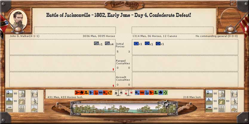 In Florida, my plan to turn Walker into a kind of swamp fox to retake Jacksonville is turning out to be a failure, as his force is proving inadequate to the task.