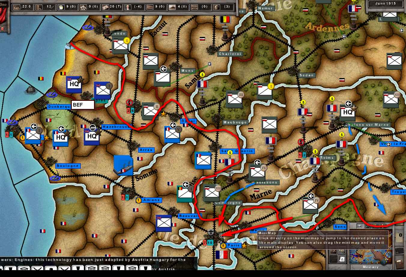 This map shot is the situation in Northern France at the start of September. Langres has finally fallen, thus opening up another route into southern France-as soon as the supply catches up