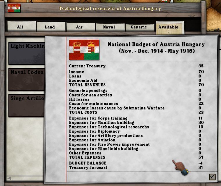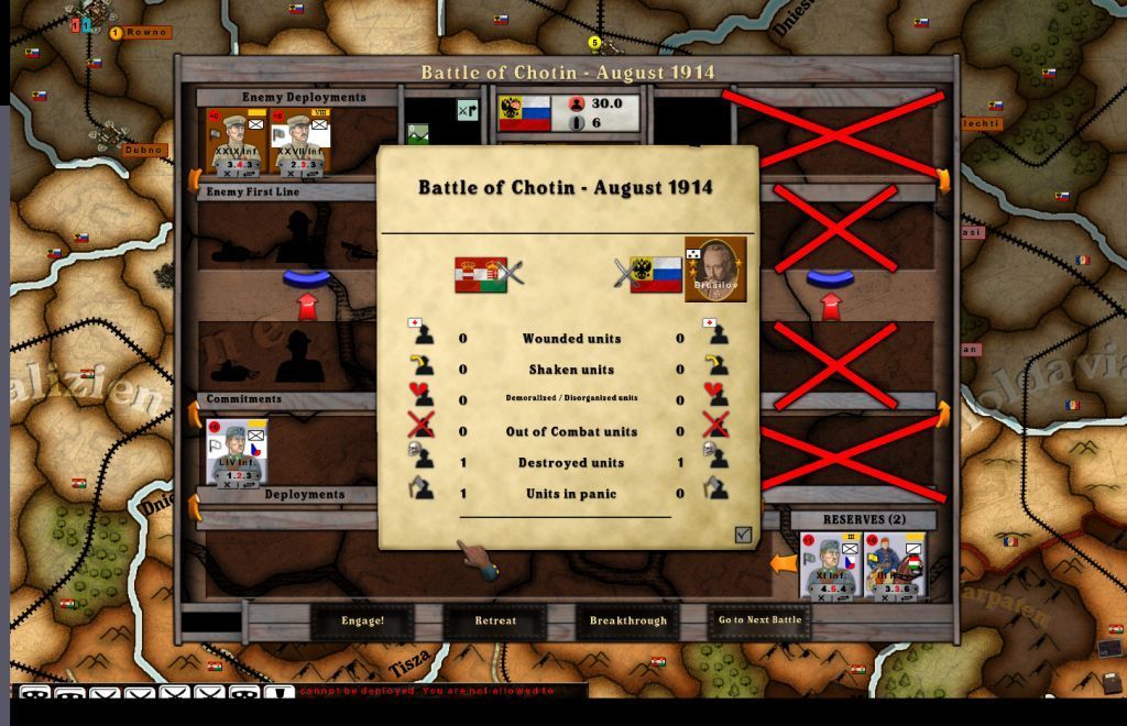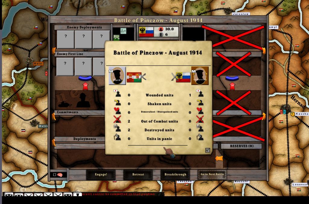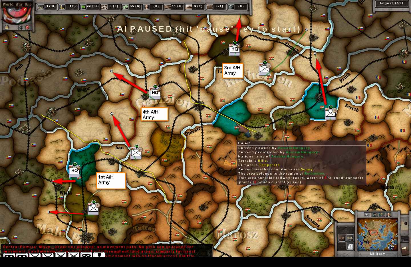 . The Austro/Hungarian Empire will also keep its Conrad Plan. For it to deviate from that without German assistance would not be prudent (at this time). There will be advances against both The Russia Empire and Serbia in late August.