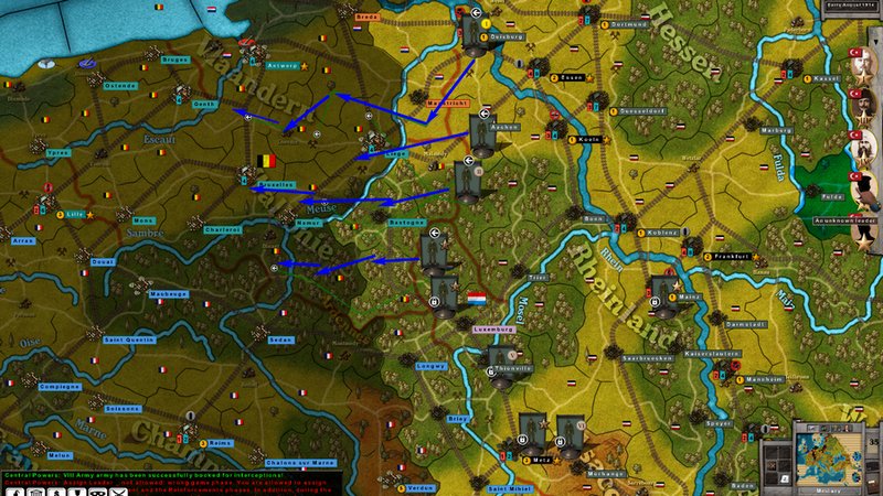 The Schlieffen Plan starts off with all German Armies locked except the 1st, 2nd and 3rd Armies.