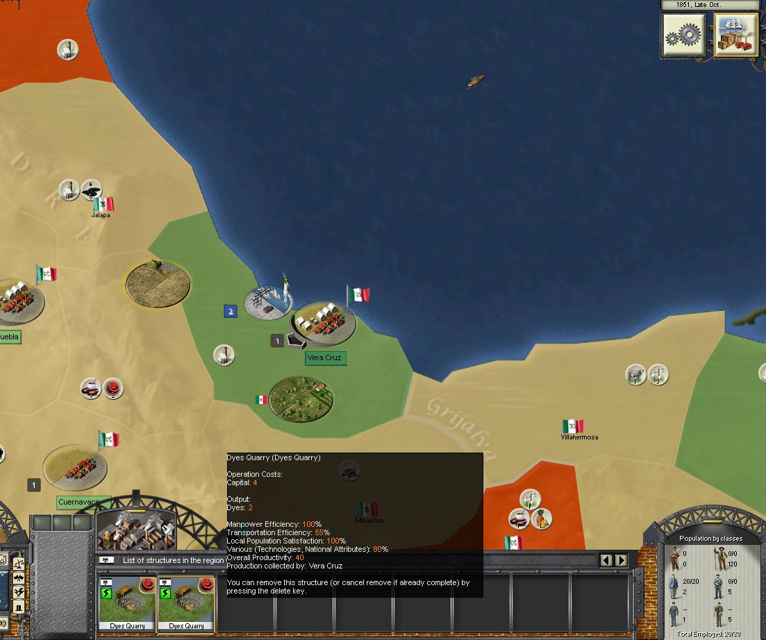 In the end, I built dye quarries in Mexico. But it didn't solve my problem. The goods never get back to Europe! I have a merchant fleet in the appropriate trade zone. According to the manual East Mexico should now be in blue and not in orange. What did I do wrong?