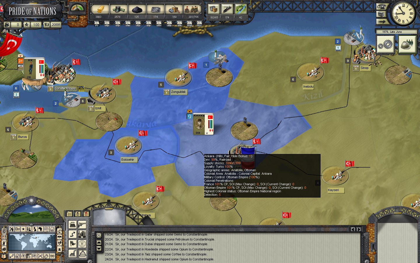 Kensai wrote:We had a similar issue with Great Britain some time ago when it conquered briefly Smyrna. When I get home I will write here the script you should add to the Plugin 1850 subfolder in the Events folder to fix this. I don't think it has to do with v1.03c as it happened before in our game. Somehow the game engine attributes 101%CP all together to the conqueror once a former national region is conquered. This cannot be reversed always, even when you sign peace meaning that the nation that gets it back (the Ottomans) won't cancel the French colonial intrusion which becomes permanent.