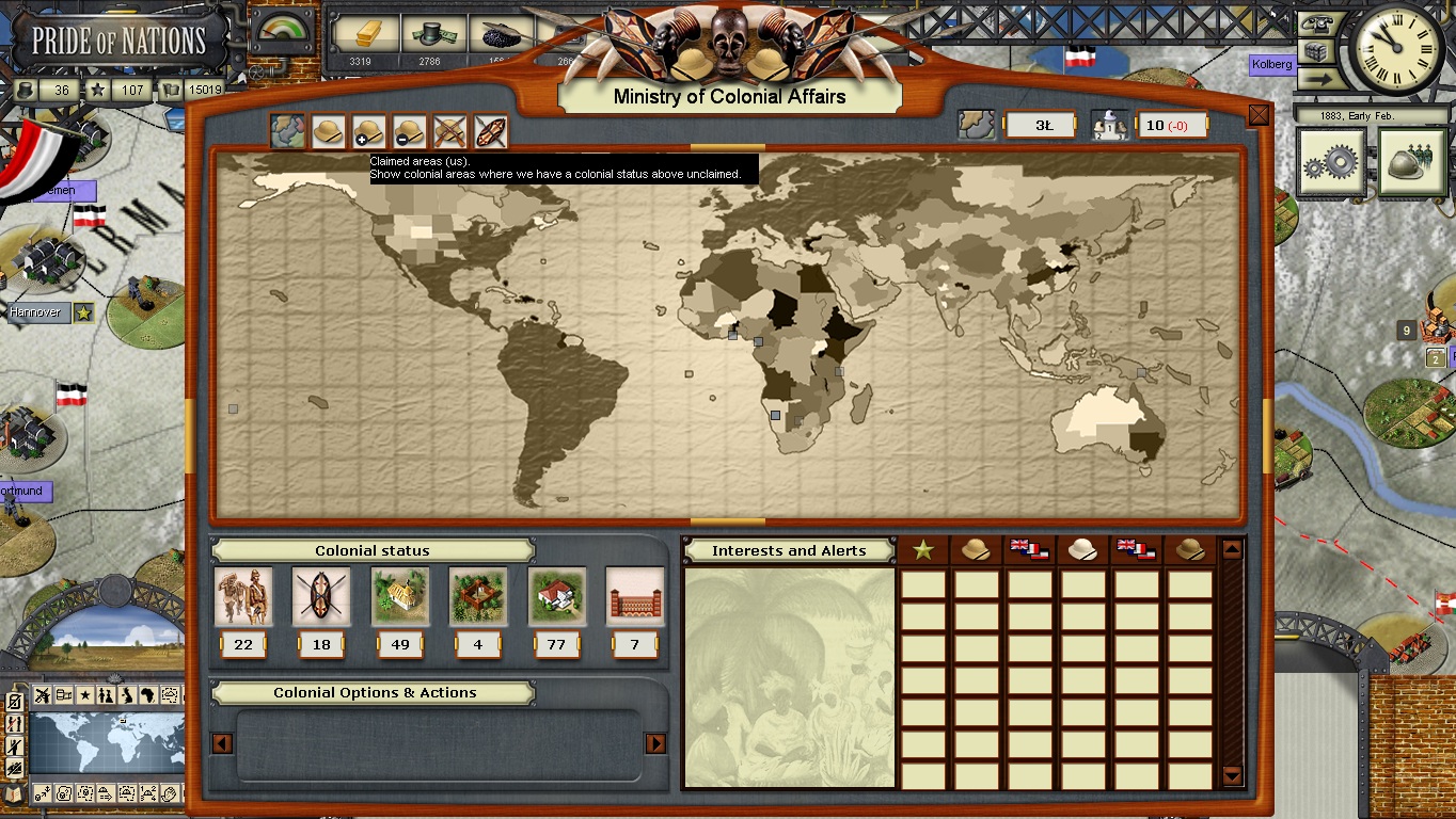 i started a new to check it with Italy but the same, nothing in the colonial page.