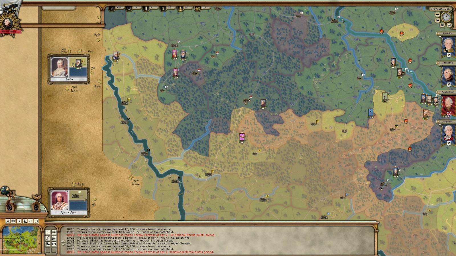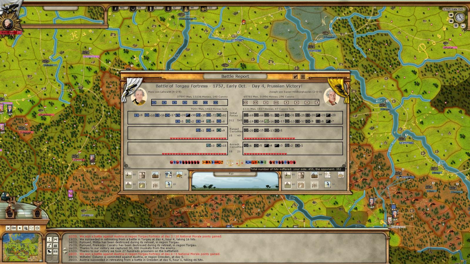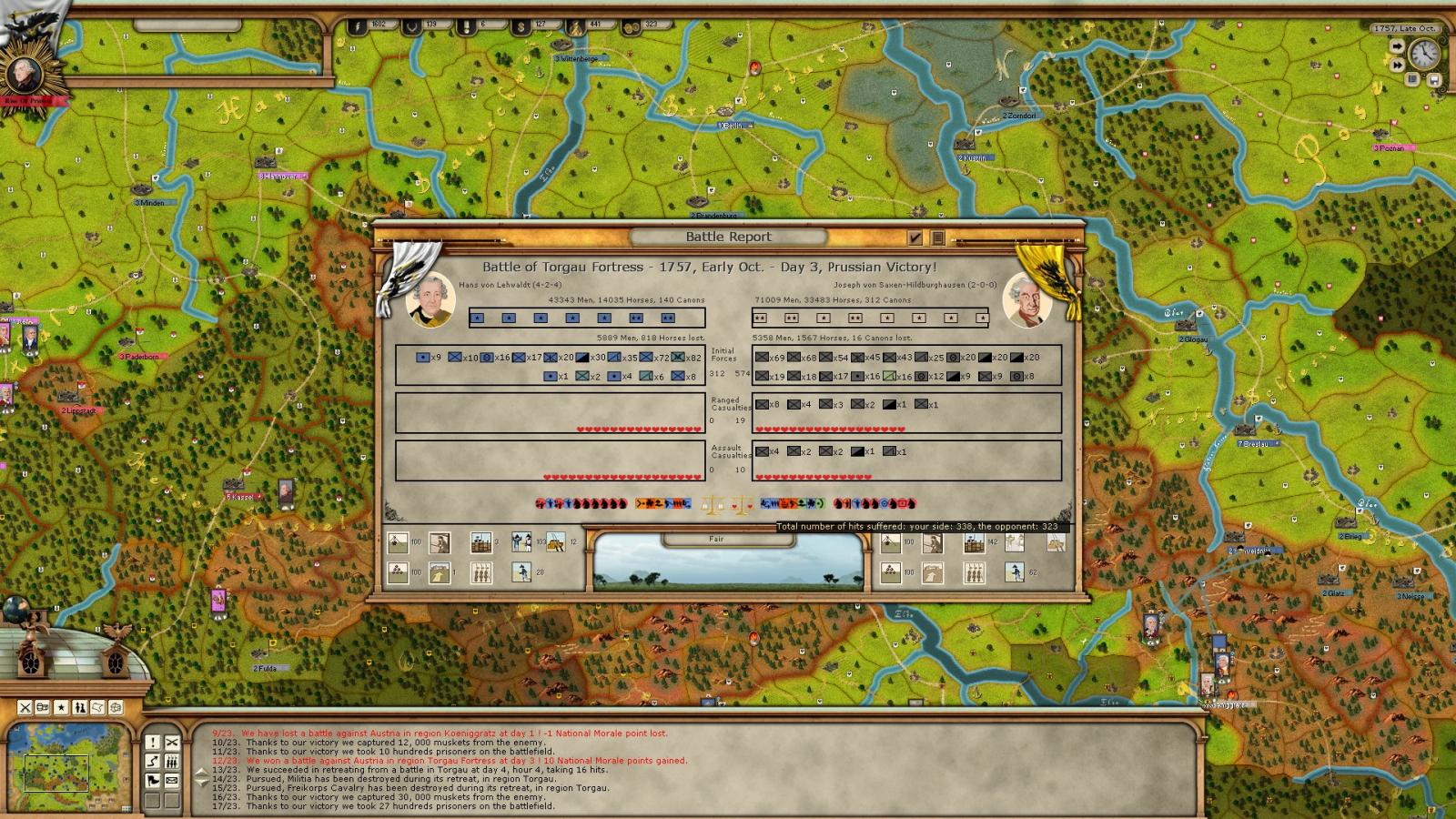 This was a very perceptive and important observation, which as far as I can tell seems to have gone unnoticed. The Seven Years War should not resemble the Great War, with lengthy and costly offensives, and yet because of this cohesion-loss problem, it's not uncommon to see a series of Verdun-style battles in a single turn. In a recent test game I observed six separate set-piece battles in a turn, resulting in the entire destruction of a major field army - utterly implausible for the period, but hardly uncommon in the game.