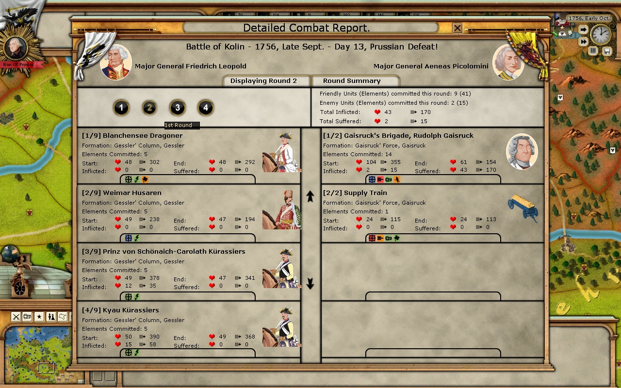 But even they are seperate they should help each other as they are in the same region. But as you said maybe Picolomini was in defensive posture. I thought at first Gessler targetted Pİcolomini forces but only targetted Gaistruck brigade. So the battle report with Pİcolomini portrait as enemy was misleading