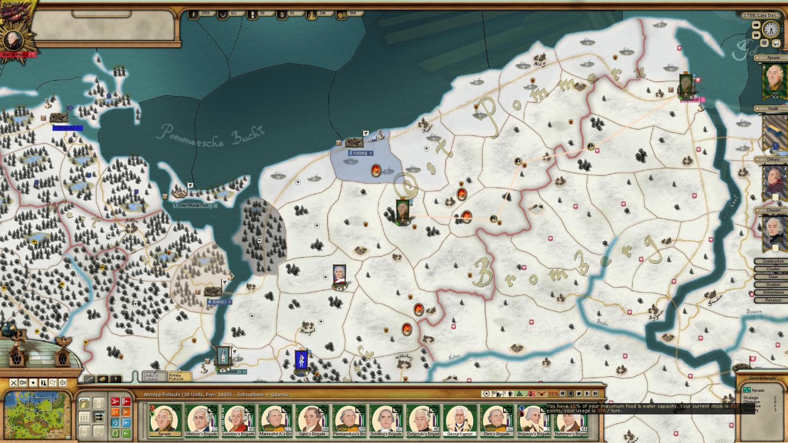 Russian cossacks captured Berlin, I missed that. Siege by russians in kolsberg continues. Russians lost half of the troops during 1 or 2 turn siege.