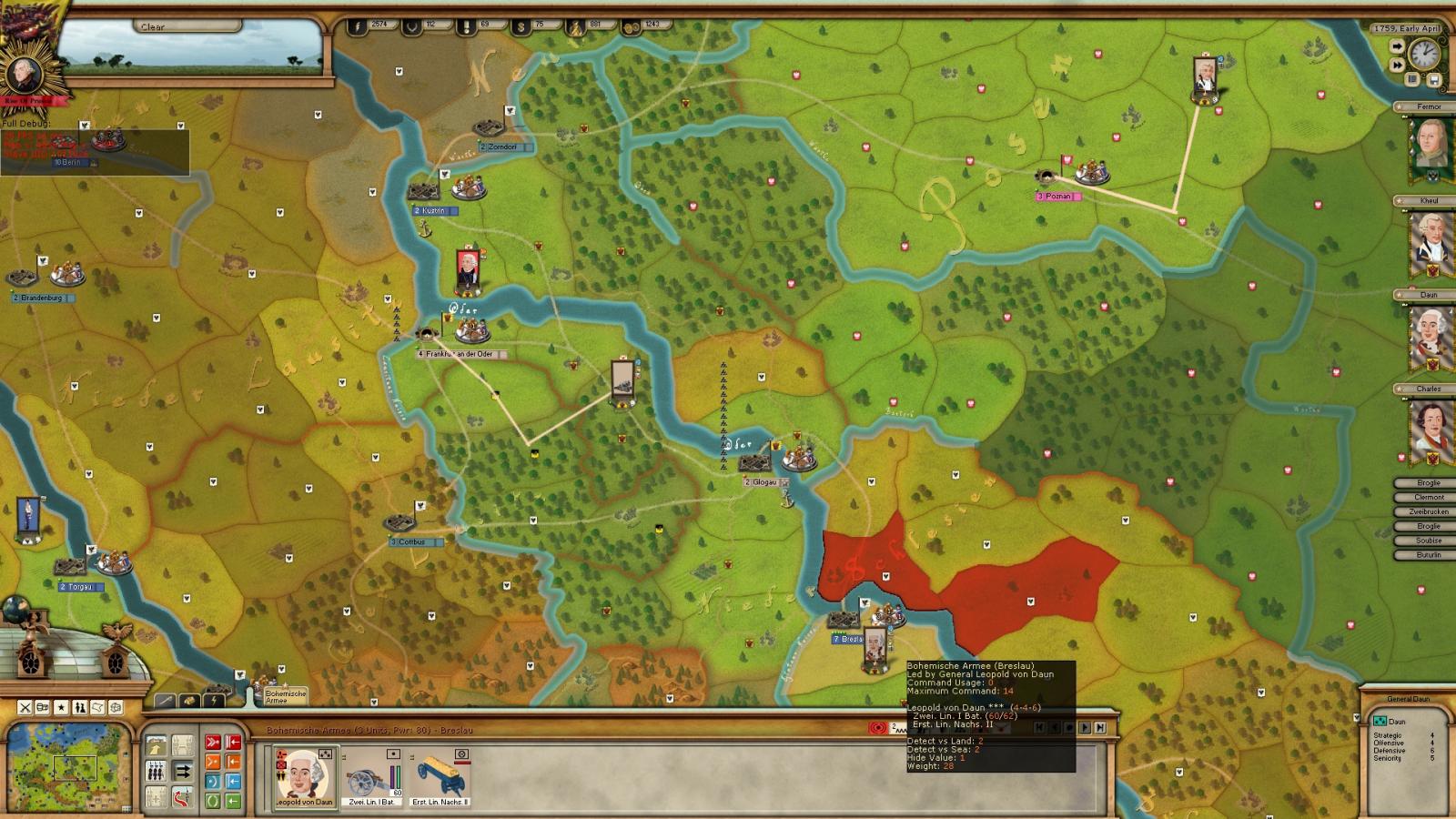 Russian army looks active but supply problems I think is the main problem. . Not necessary for Russian ai, Aus Ai can also lose many forces when it is winter. But this AI looks very promising, if only supply problems can be solved in some way. As in the picture below Hadik's army transformed into supply wagon