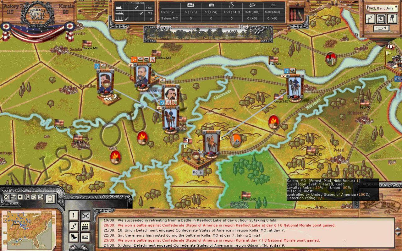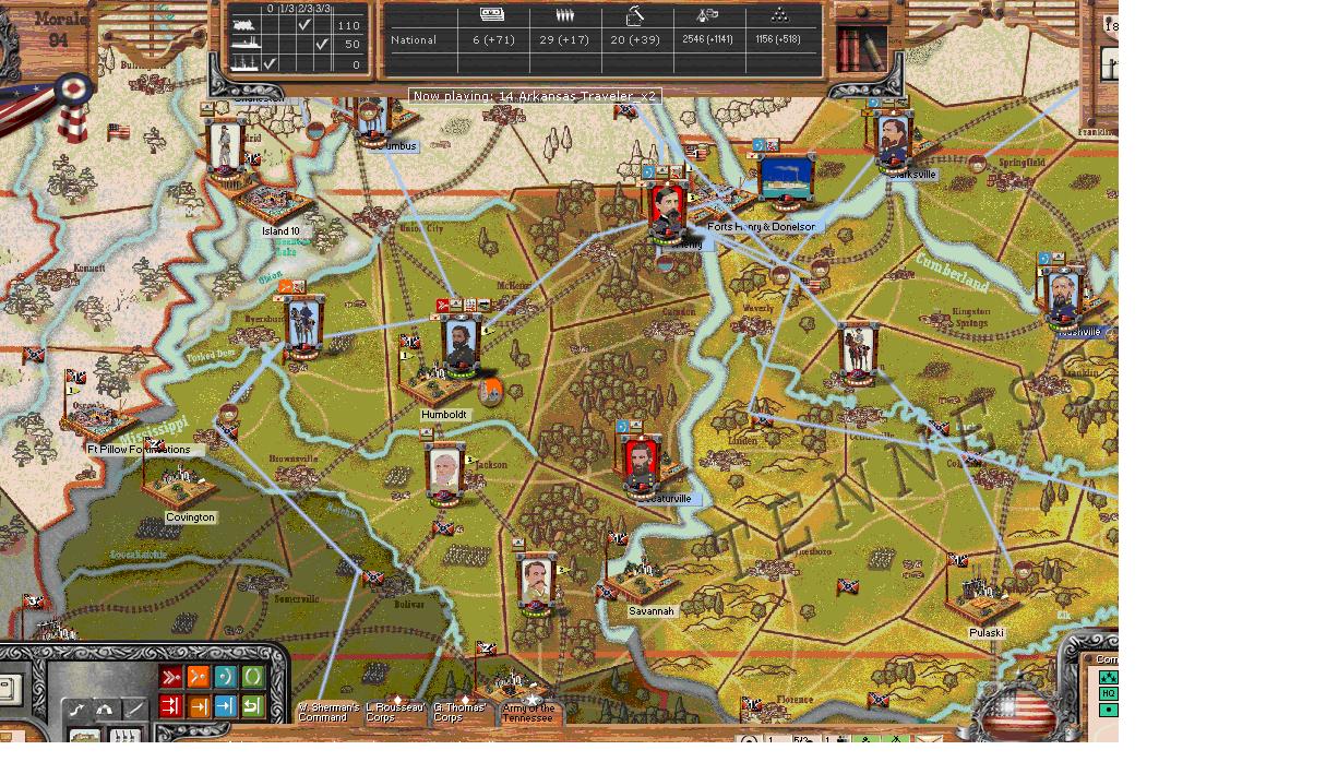 At Pulaski, Sherman has been joined by Dodge but the weather is bad so I will continue cutting the East/West railines and take Chattanooga in May.