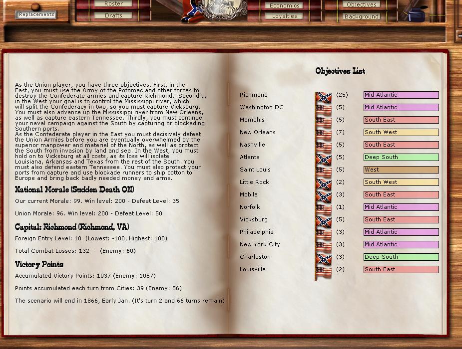 Political Options - 5% War Bonds, POW exchange, Move capital to Charleston.