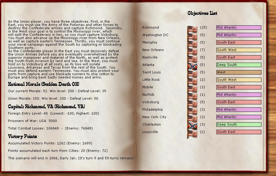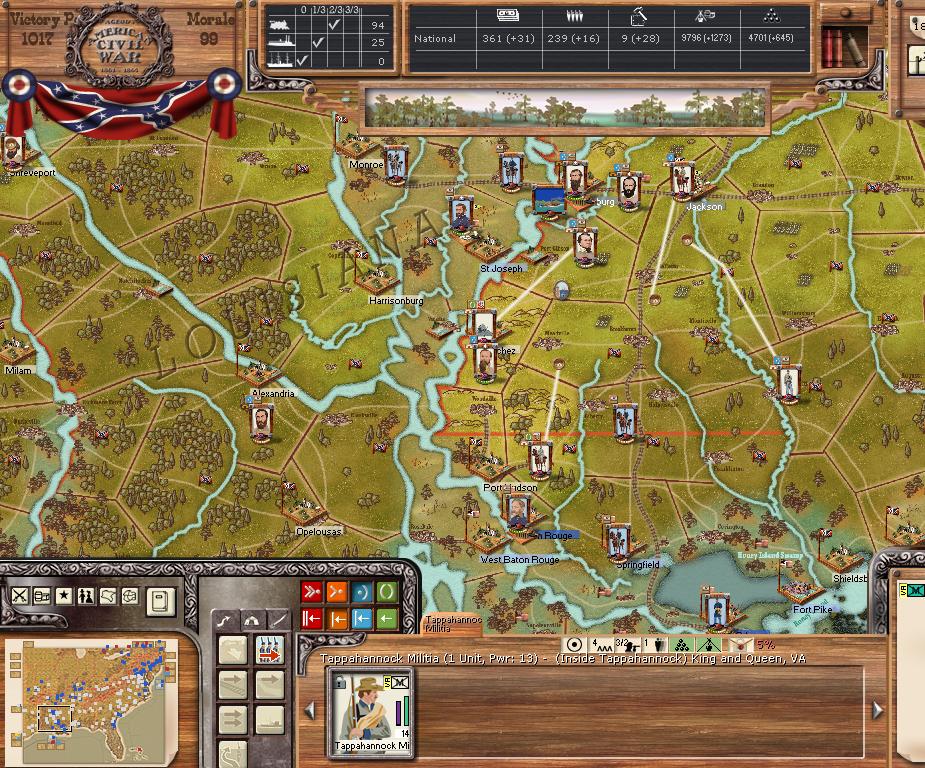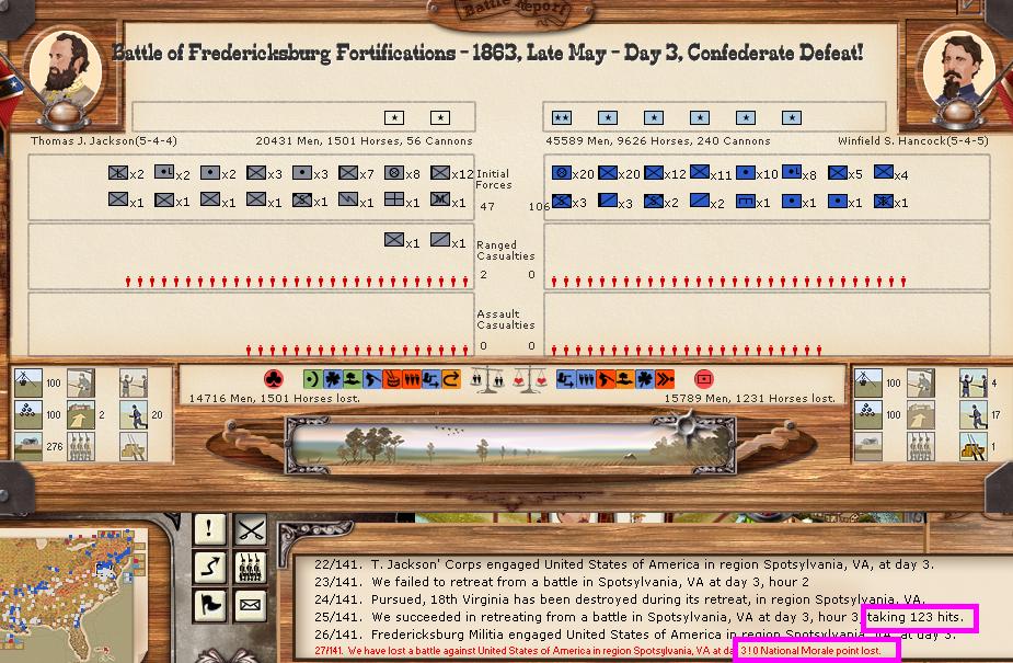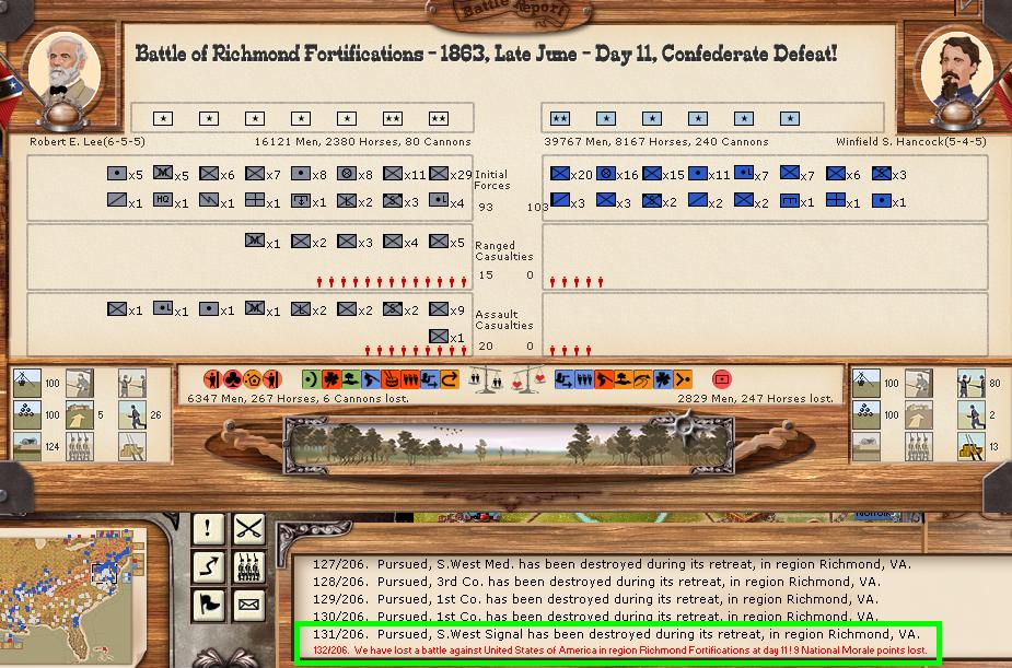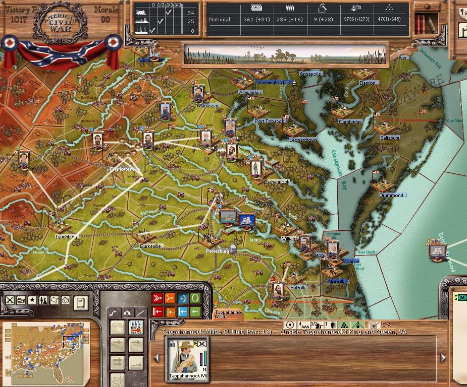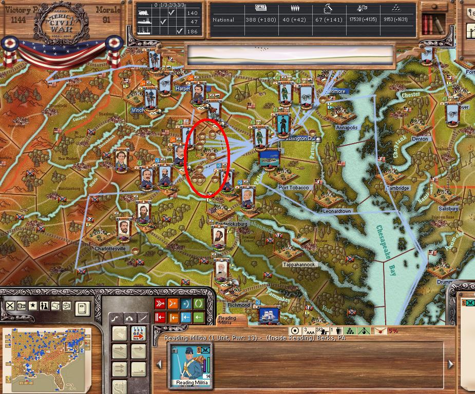 The Army of Potomac, at N.Virginia, continues growing it's forces. In 2 or 3 more turns, the total divisions will be about 20 divisions, and beginning the good time I will attack the rebel lines to Richmond.
