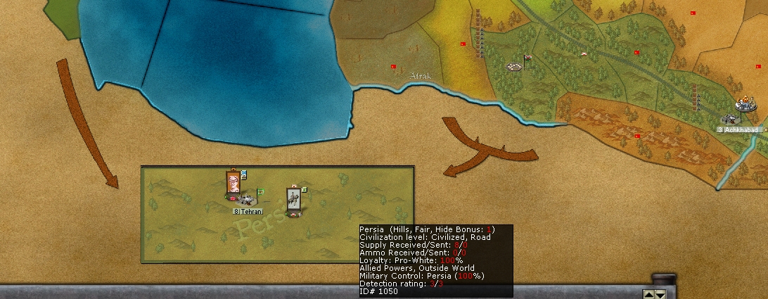Edit: Historically as far as I know, British forces move from Tehran to Bakü to engage Bolshevik forces. As city had some petroleum resources.