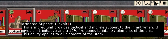 - tanks: not more than one per division, anything more is a waste, pure tank divisions are stupidity (the Germans get one in the Drang scenario for example, split it up!). The tank doctrine in RUS is that of WW I rather than WW II. Tanks have the armoured support ability which grants infantry within the same division an initiative bonus (higher chance to fire first) and improves their combat effectiveness by +10%. Moreover there is a bug that seems to change the movement rules for infantry divisions if they contain a tank element. Basically such a division moves about as fast as cavalry. Never leave tanks on their own - it is a waste of the armoured support ability; never put them in a cavalry division since the ability only affects infantry.
